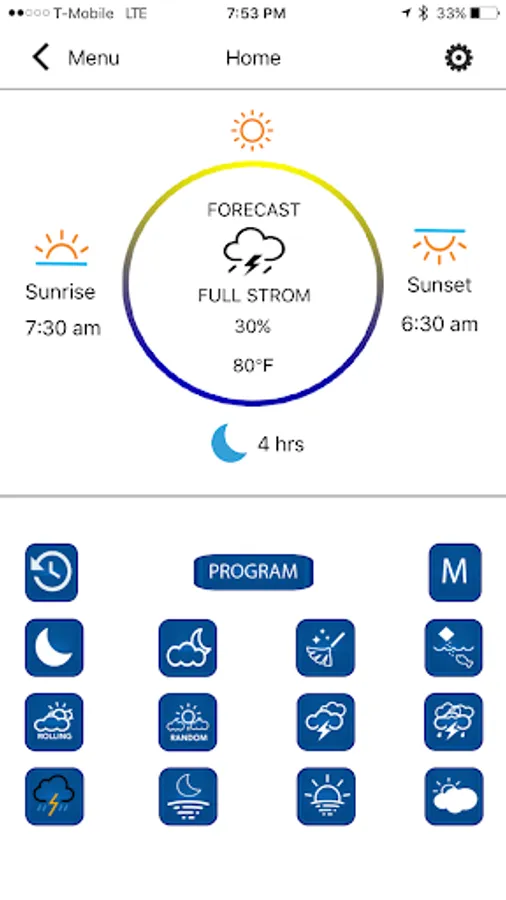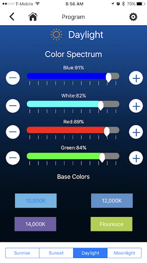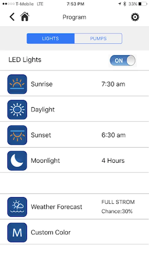 - Program your daily lighting schedule including sunrise, sunset, daytime & lunar colors