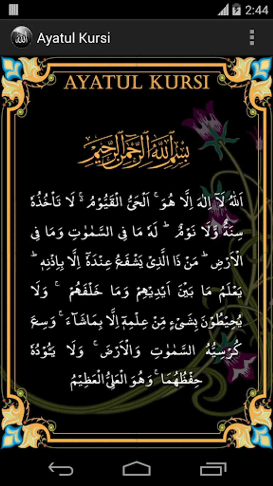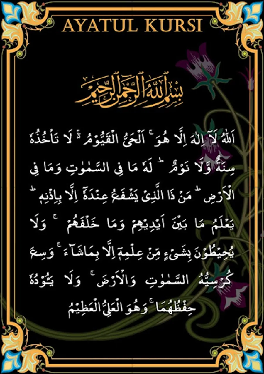 The Throne Verse (آية الكرسي) or Ayatul Kursi, is the 255th verse of the second Surah Al-Baqara.