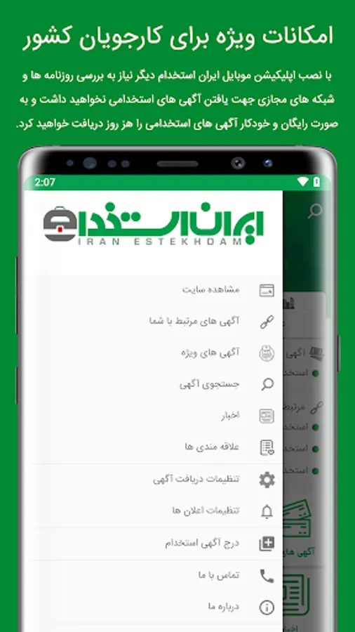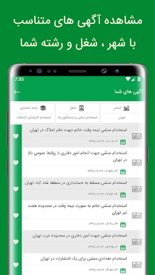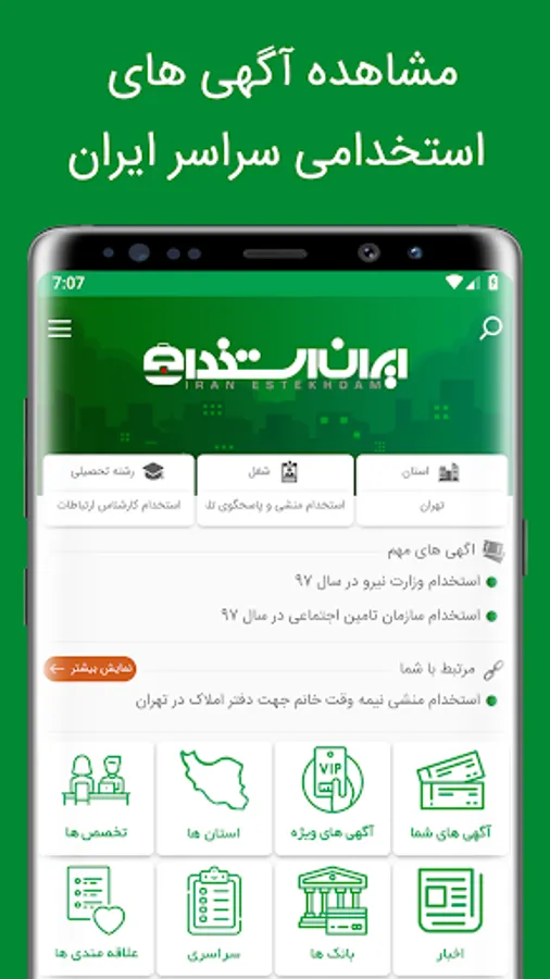 - امکان جستجوی اختصاصی در بین آگهی های استخدامی کشور بر اساس انتخاب شما
