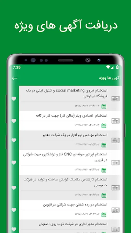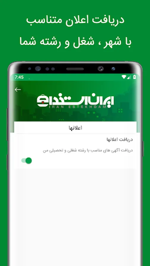 - فعالسازی هشدار خودکار از طریق اعلانهای گوشی در صورت دریافت آگهی های جدید استخدامی متناسب با تنظیمات انجام شده شما