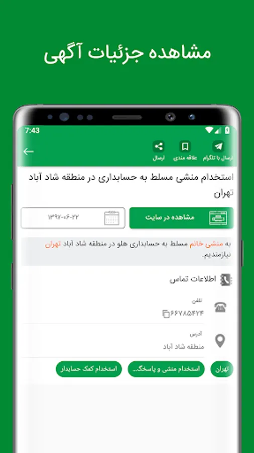 - امکان اشتراک گذاری و ارسال به دیگران آگهی های استخدامی