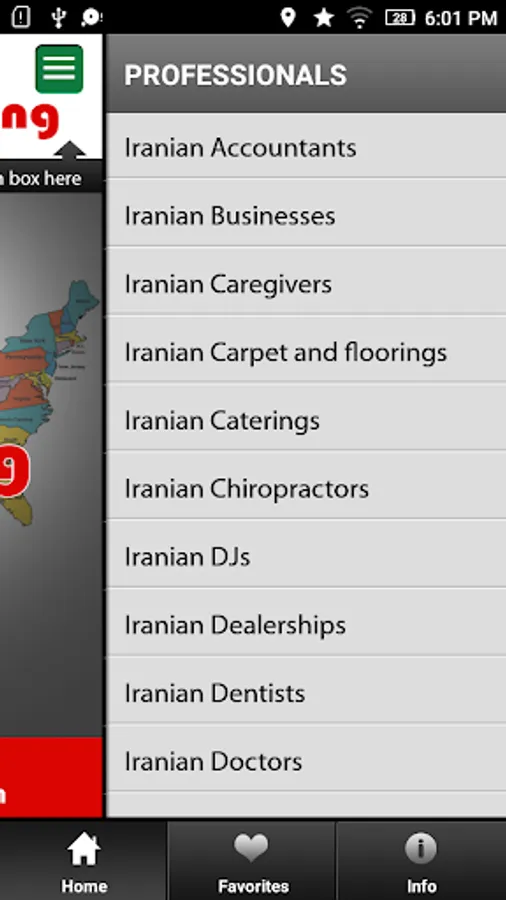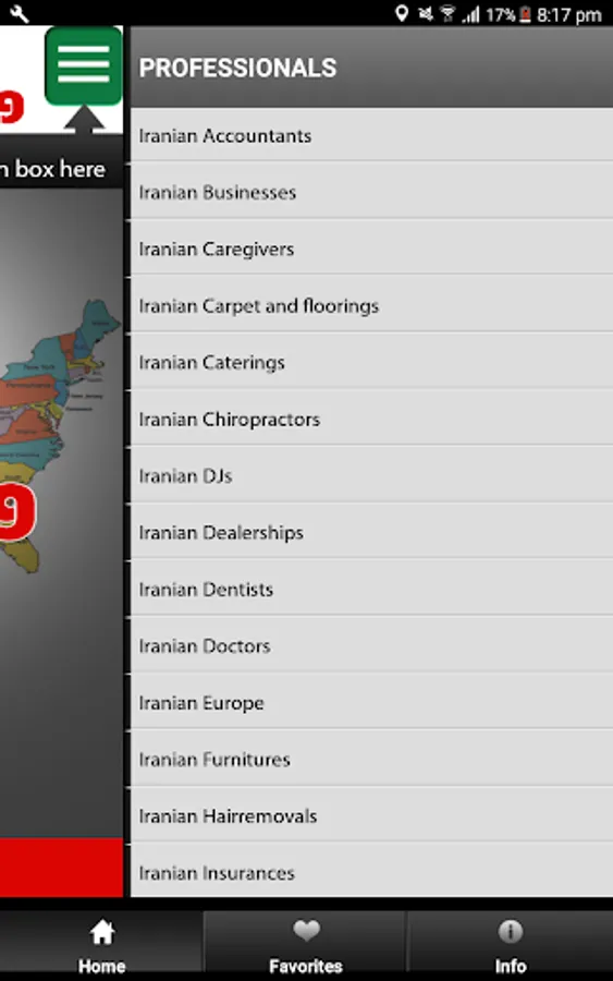 Find Iranian Doctors, Lawyers, Accountants, DJ's, Real Estate Agents, Wedding Professionals, Therapists, Restaurants, Caterings, Supermarkets, Organizatins, ...etc. in every state of the US.