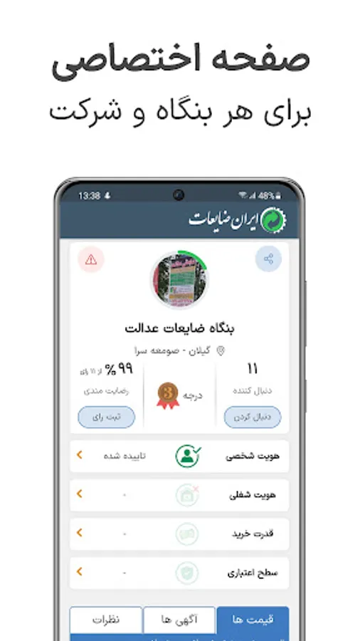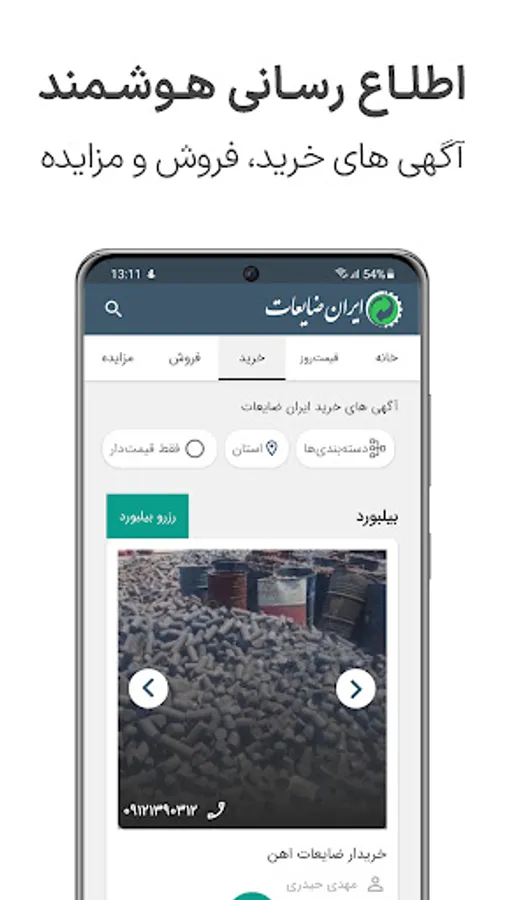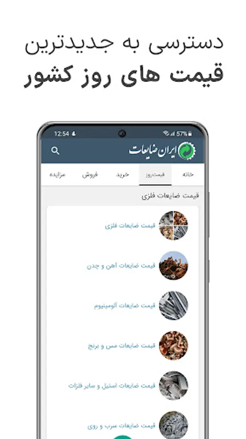 اپلیکیشن ایران ضایعات یک نرم افزار کاربردی برای تمامی صنعتگران و فعالان حوزه بازیافت و ضایعات است. از قیمت روز ضایعات و محصولات صنعتی، مزایدات، آگهی های خرید و فروش مطلع شوید.