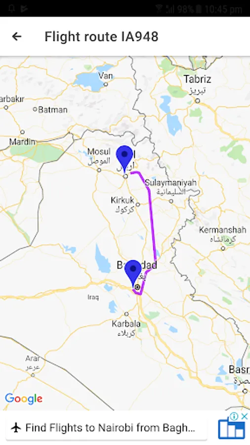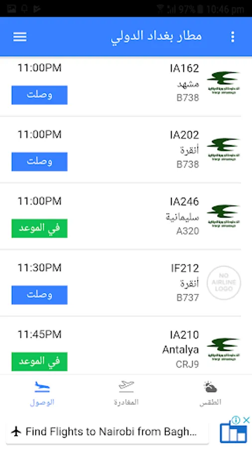 • Information on incoming and outgoing flights to Baghdad International Airport