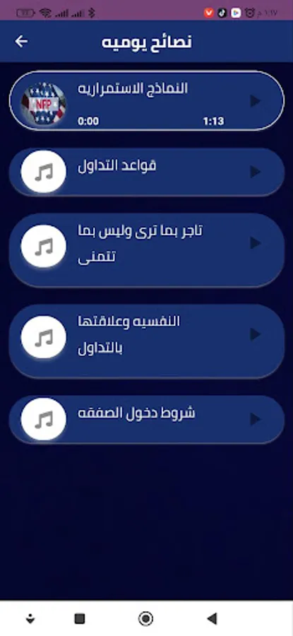 The first Arab application interested in Arab traders and offers a lot of features, including providing daily recommendations and general market analyzes, in addition to a lot of advice in this field recorded in audio, in addition to daily follow-up with a team specialized in the world of trading.