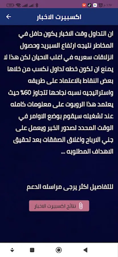 The first Arab application interested in Arab traders and offers a lot of features, including providing daily recommendations and general market analyzes, in addition to a lot of advice in this field recorded in an audio form, in addition to daily follow-up with a team specialized in the world of trading.