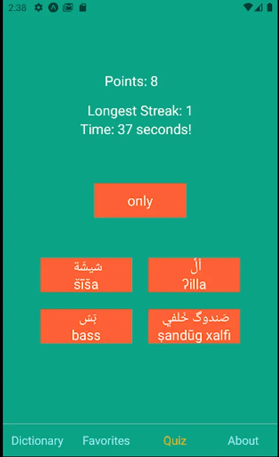 Use the search feature to look up words in English or Arabic. The dictionary currently contains about 1200 entries. You can also search using the chat alphabet (e.g. 7 for ح) but this may not work for every word. You can "favorite" words you come across in the dictionary and quiz yourself on them, or just quiz yourself on random words. You can also add your own custom entries to your favorites list. All words are transcribed phonetically exactly as pronounced by a native Iraqi of Baghdad. We hope to add more entries including words and pronunciations from other regions in the future. If you found this app useful, don't forget to give a rating and review. We'd love to hear your feedback towards helping improve the app!