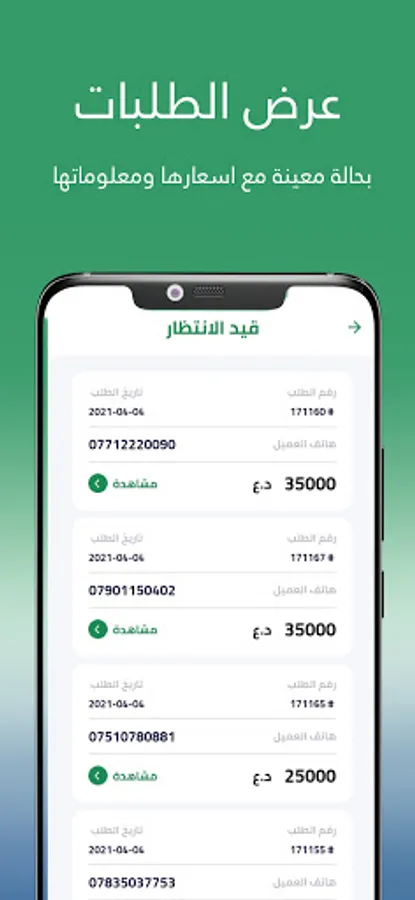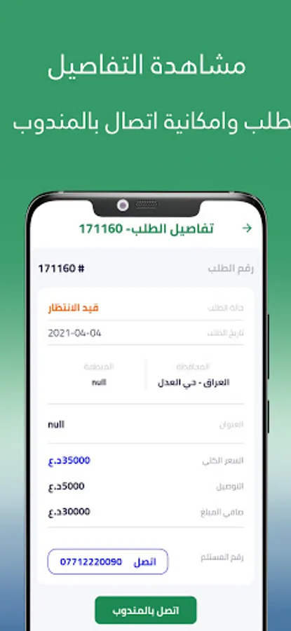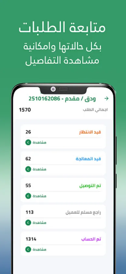 يمكنك متابعة الطلبات الخاصة بك من خلال التسجيل في التطبيق وبعدها فتح المستخدم وادخال رمز ال رمز العميل الخاص بك لمتابعة كل الوصولات بكل حالاتها وامكانية البحث والاستعلام عن الحالة للوصل مع نظام اشعارات عام لايصال حالة الطلب الى العميل