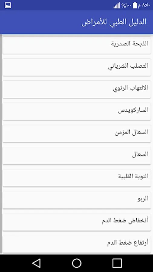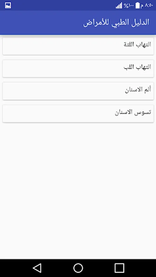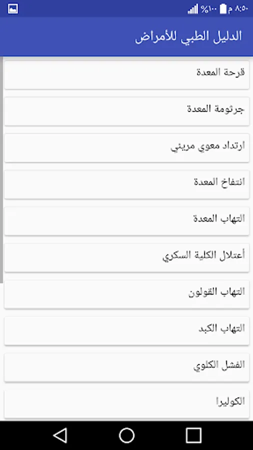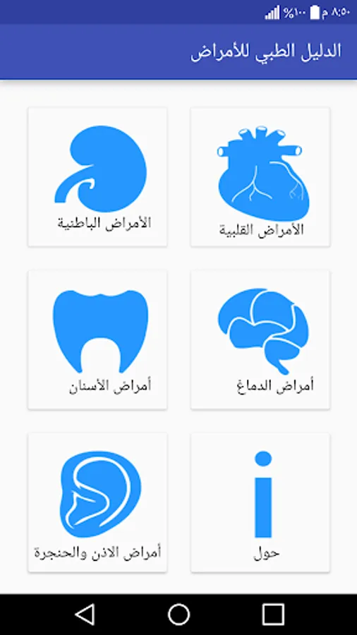 Medical evidence of disease Android application includes Medm common diseases and explains Aspbabha and their symptoms, treatment and works without the need for an Internet connection Mmaiovr fuss user