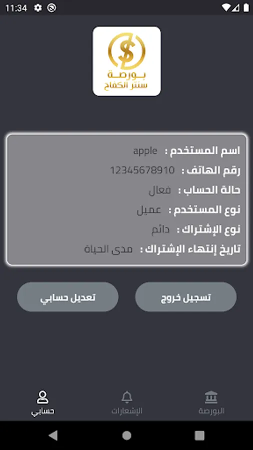 The application of the Al-Kifah Stock Exchange Center, specialized in transferring changes in exchange rates in Iraq.