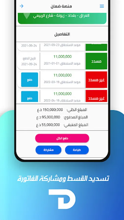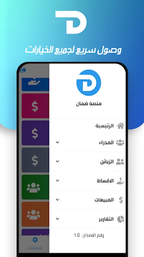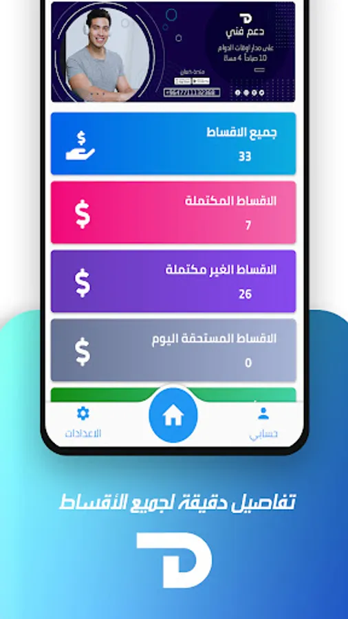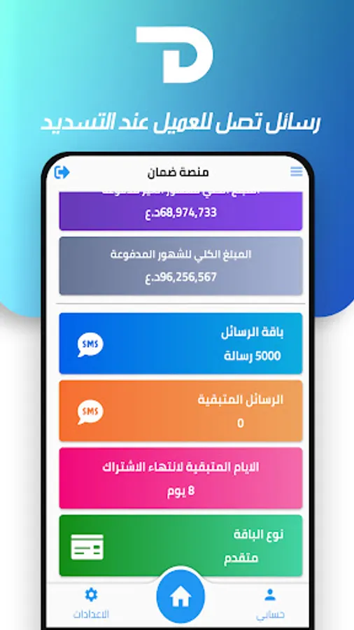 A cloud system to organize the work of individuals, establishments, institutions, and companies operating in commercial activities that deal with the installment sale and deferred sale system, and the Daman platform service provides the ability to add customers and investors and their data, manage goods and inventory, create installments and sell and print them, manage financial accounts and print detailed reports for all inputs And follow-up work in an integrated manner, and the SMS system allows to notify customers and investors of all their financial transactions, in addition to the settings page, which enables control of all pages of the program according to what is commensurate with the user’s work style.