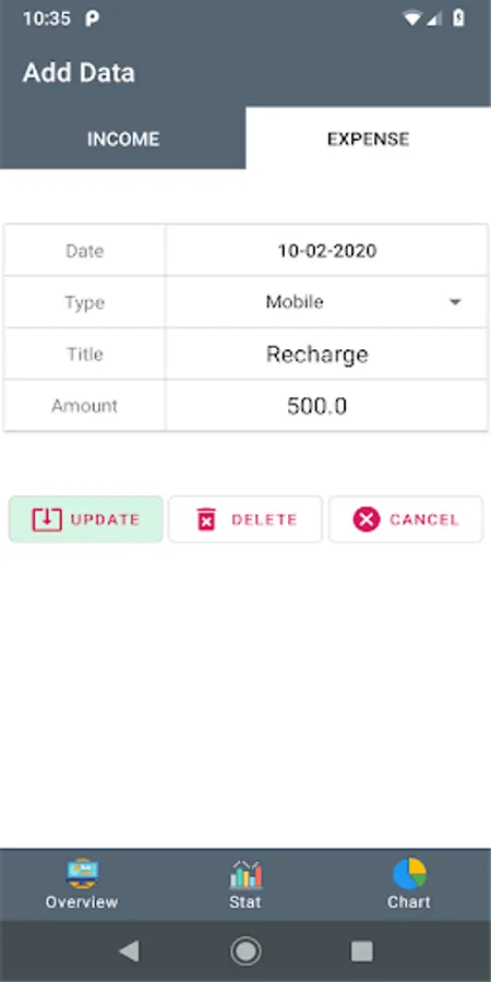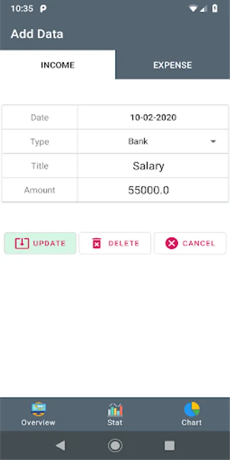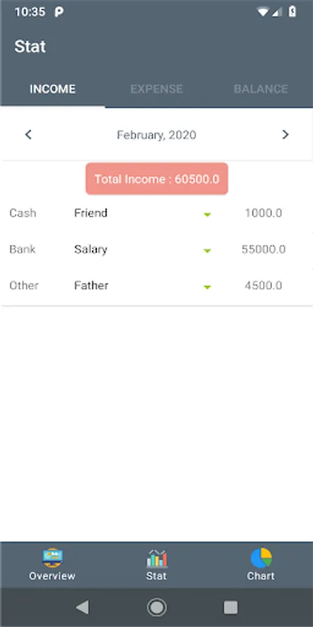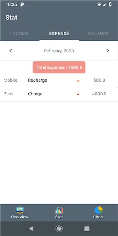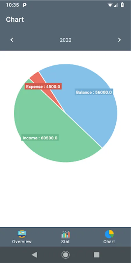 You can easily add your different cost like cash, bank, mobile or other. View your cost separated by month. In the stat section you can easily view your total income, expense and balance. There is an outstanding pie chart which will show your yearly cost.
