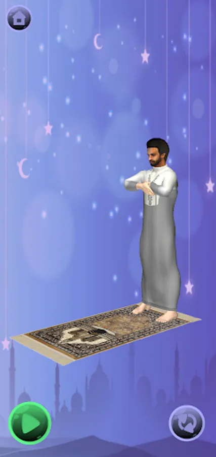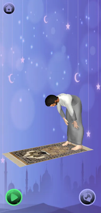 An app where a character looks like Mohammed Salah demonstrates how to pray properly.