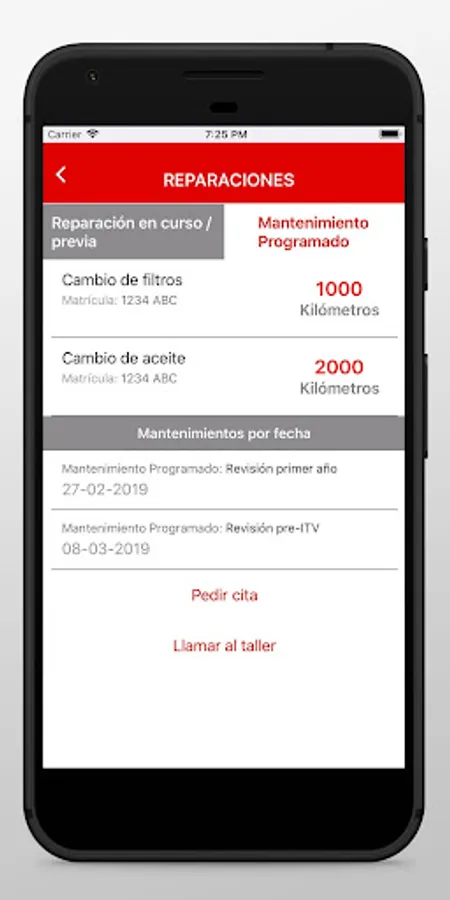 - receive notifications or reminders advising you when you have to perform maintenance on your vehicle; according to dates or according to kilometers traveled.