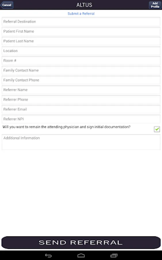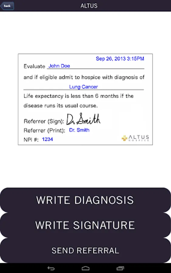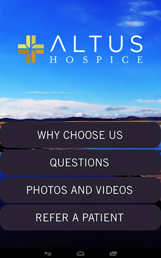 This hospice app provides a convenient way for healthcare providers to refer patients to Altus Hospice. The app also provides information about the clinical services of Altus Hospice. Healthcare providers will find guidelines on hospice eligibility. Referrals submitted through the app will be received by Altus Hospice’s Intake Department for expedient follow-up. All patient information received through the referral form will be managed with HIPAA compliance.