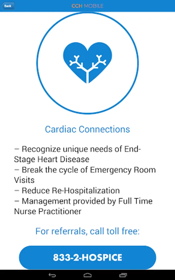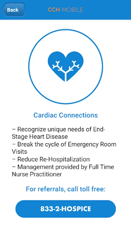 Founded in 1993, Compassionate Care Hospice is a community-based organization committed to providing the highest quality hospice care to patients, their families, and close friends throughout the country. We are currently located in over 20 states from the East to the West coast. Use this physician and healthcare professional referral resource to learn about hospice eligibility and/or to submit a referral or request a consultation. Use the Compassionate Care Hospice Mobile App to make referrals, or use the in-app eligibility guide by diagnosis to refer patients.
