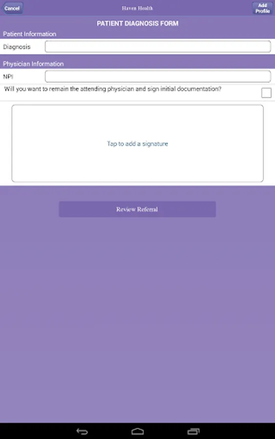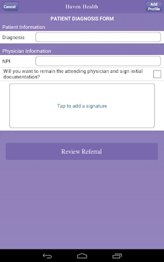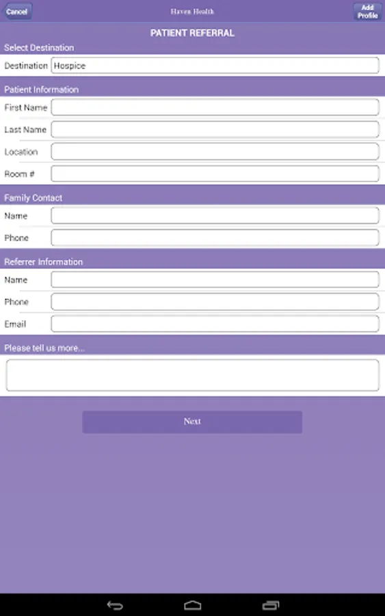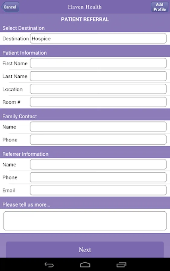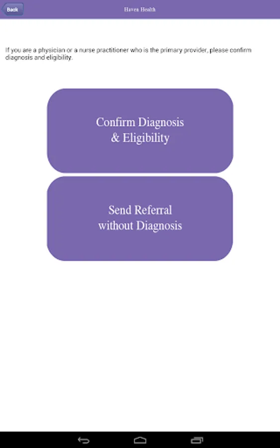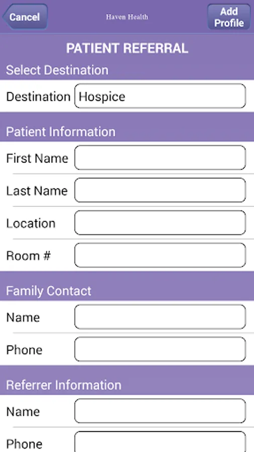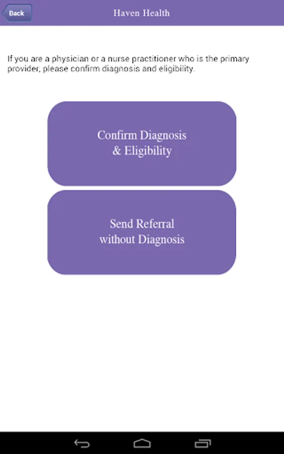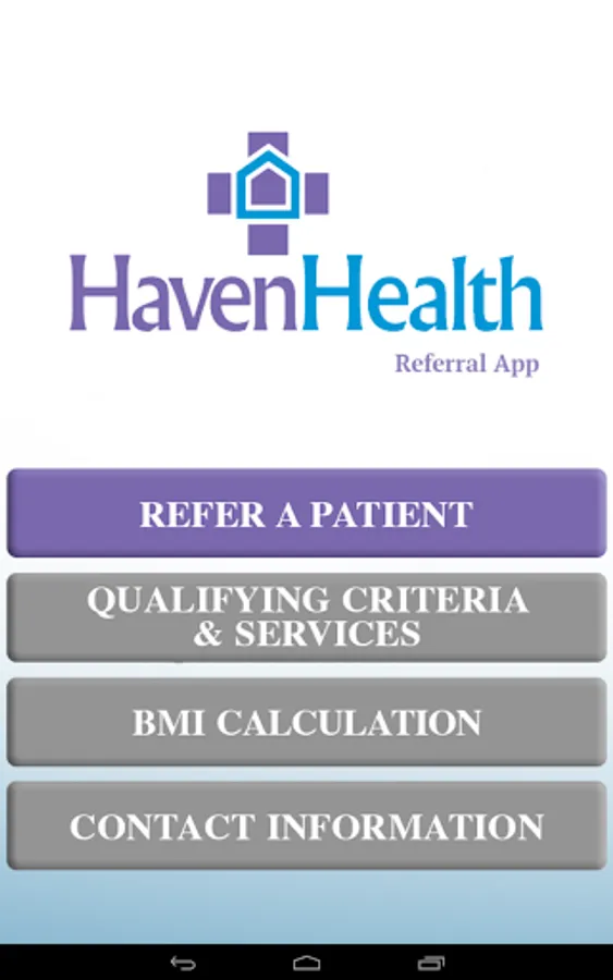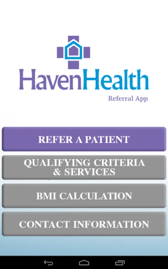 This home healthcare app provides a convenient way for healthcare providers to refer patients to the Haven Health. The app also provides information about clinical services of Haven Health. Healthcare providers will find guidelines on eligibility and services. Referrals submitted through the app will be received by the Haven Health's Intake Department for expedient follow-up. All patient information received through the referral form will be managed with HIPAA compliance.