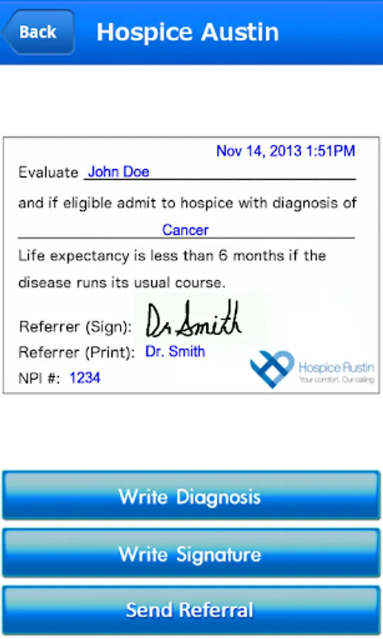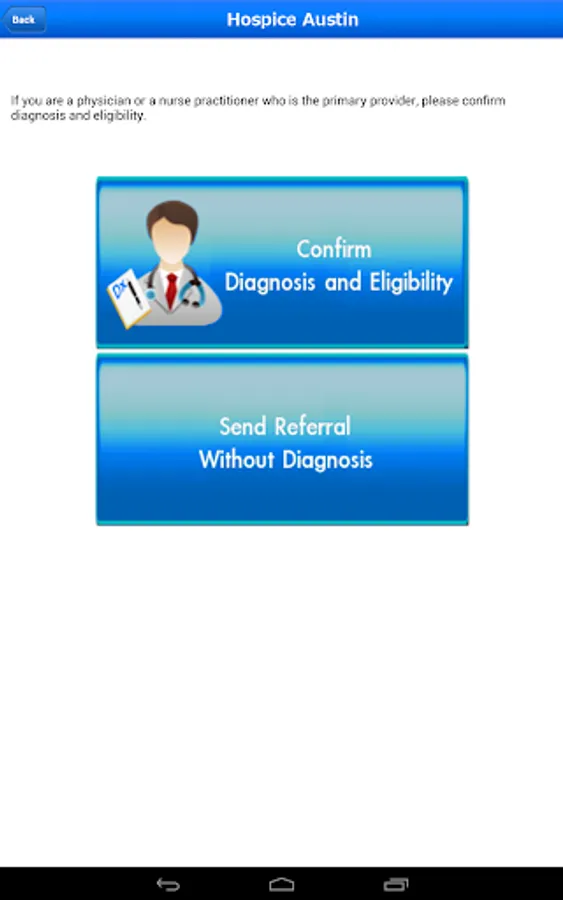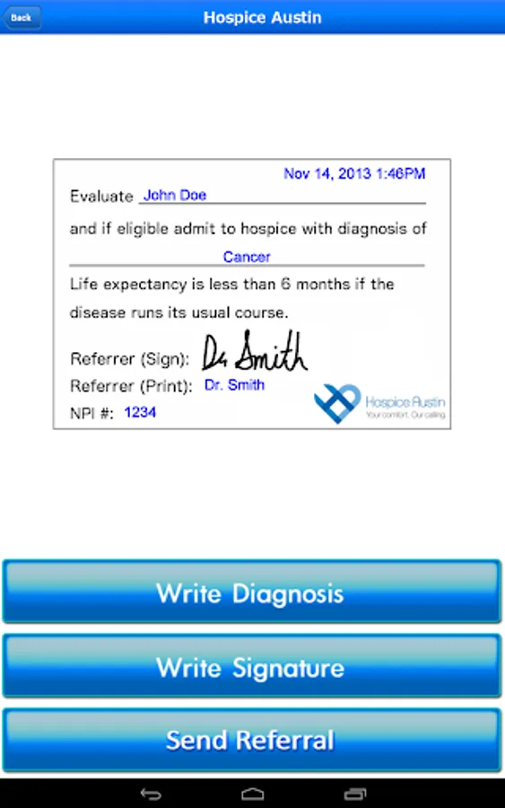 This hospice app provides healthcare professionals with a convenient way to refer patients to Hospice Austin. It also includes disease-specific guidelines to help providers determine eligibility, ways to talk to patients about end of life issues, and information about services that Hospice Austin provides. Referrals submitted through the app will be followed up expeditiously. All patient information received through the referral form will be managed wit HIPPA compliance.