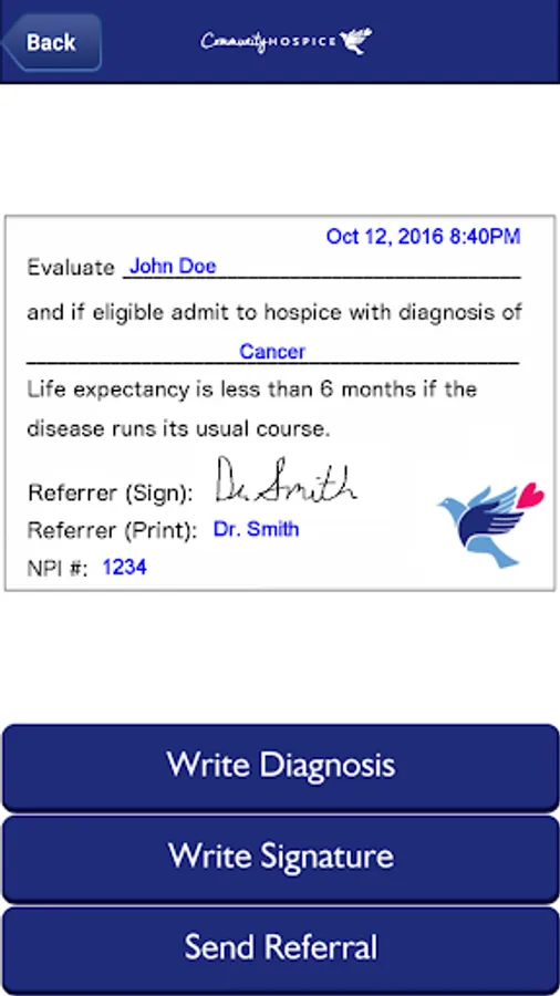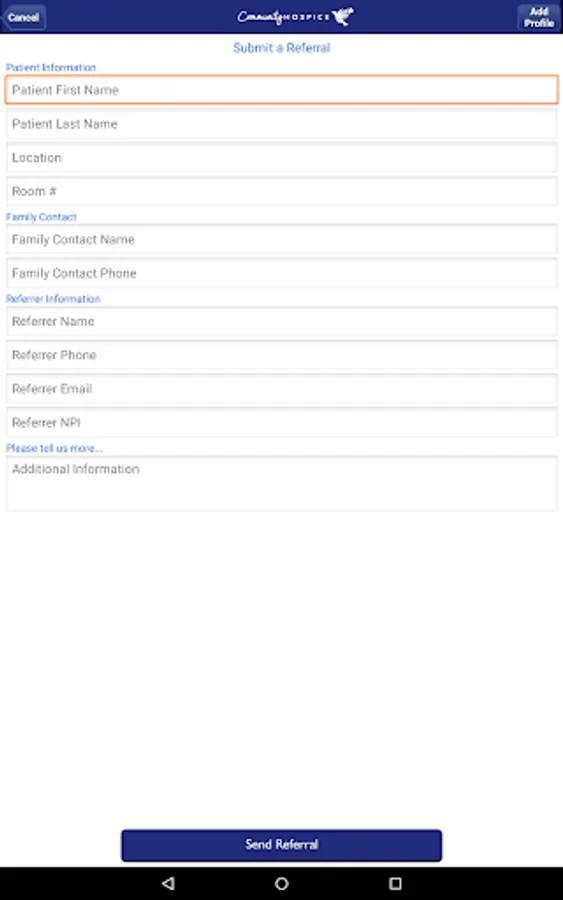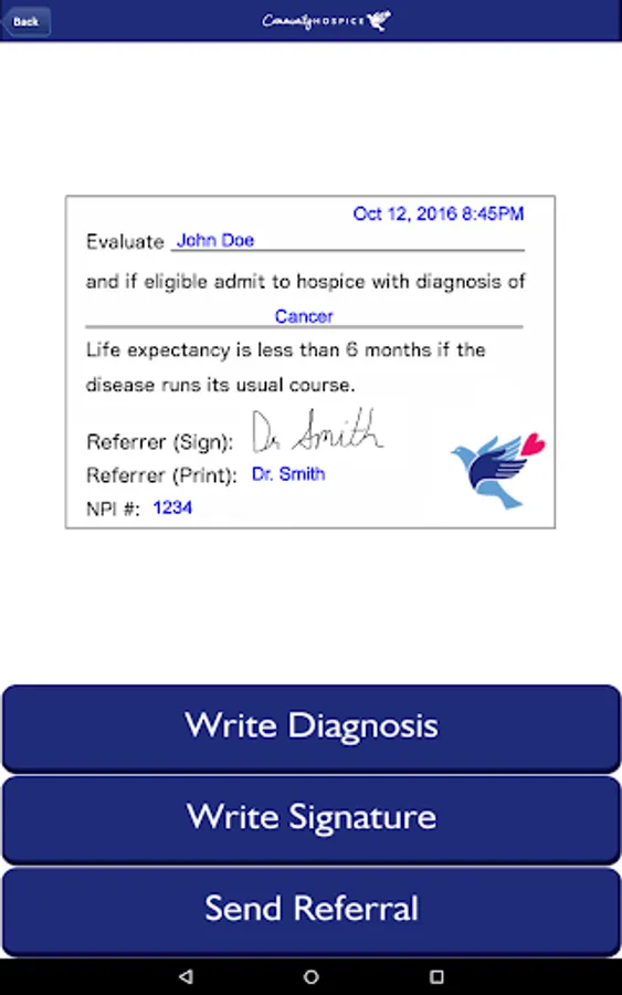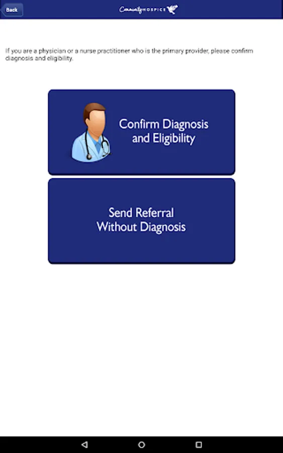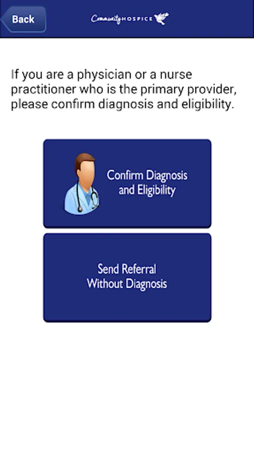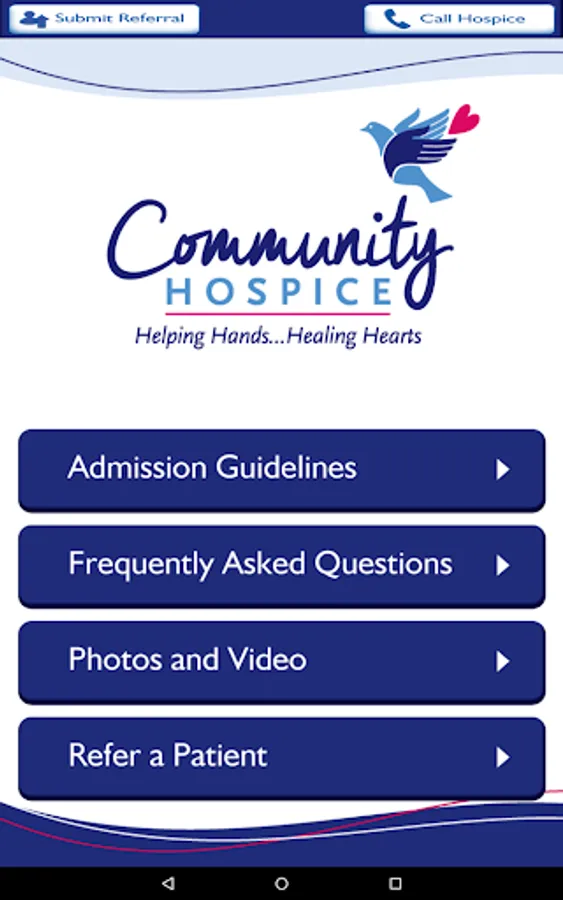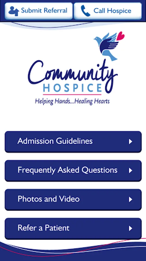 Our app provides a convenient way to make a hospice referral. Healthcare providers will find guidelines on hospice eligibility along with an electronic signature feature to expedite their hospice referrals. The app also provides answers to frequently asked questions and showcases the services of Community Hospice. Community Hospice’s Referral and Admission Center will respond to referrals submitted through this app. All patient information received through the referral form is HIPAA compliant.