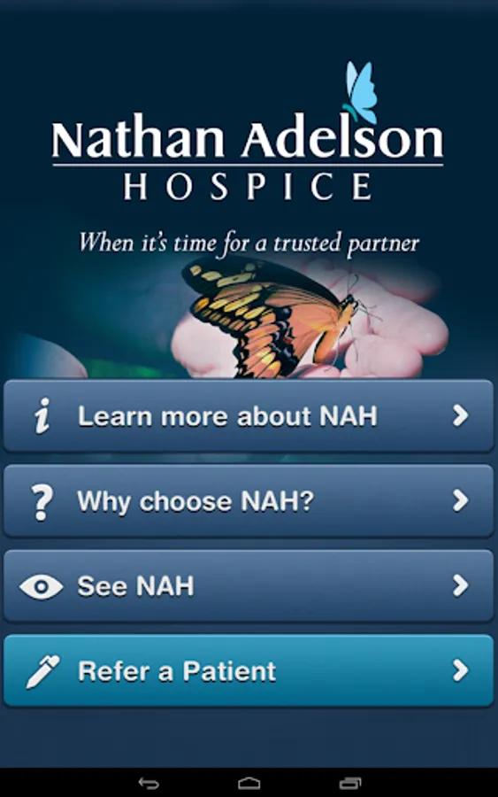 This hospice app provides a convenient way for healthcare providers to refer patients to the Nathan Adelson Hospice. The app also provides information about clinical services of Nathan Adelson Hospice. Healthcare providers will find guidelines on hospice eligibility. Referrals submitted through the app will be received by Nathan Adelson’s Intake Department for expedient follow-up. All patient information received through the referral form will be managed with HIPAA compliance.
