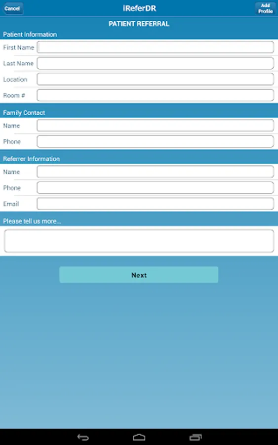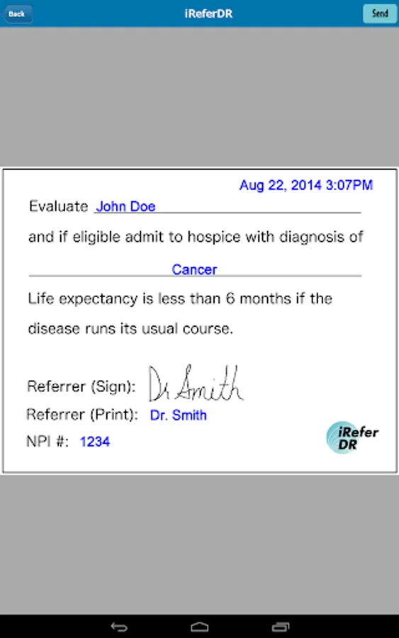 iReferDR's App for referrals. This app includes various levels of information, a photo gallery, a video, and a referral form. If you are interested in purchasing your own a custom referral app, visit www.iReferDR.com.