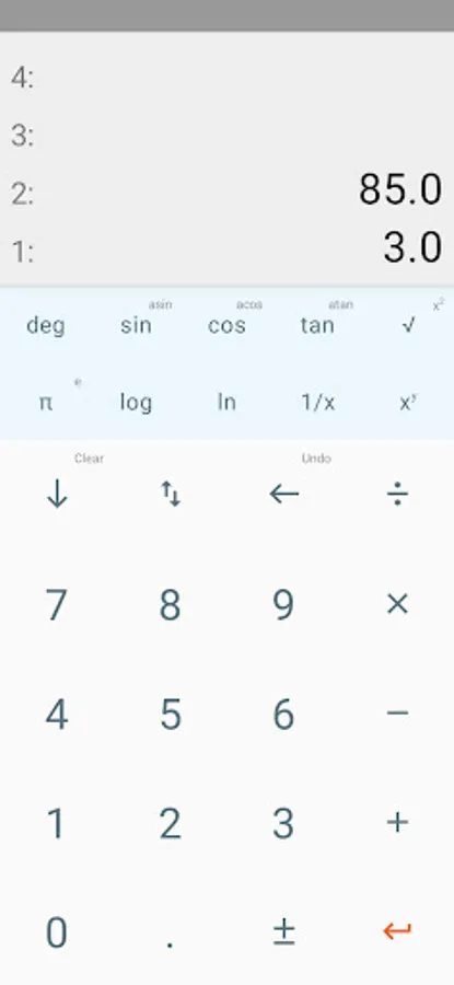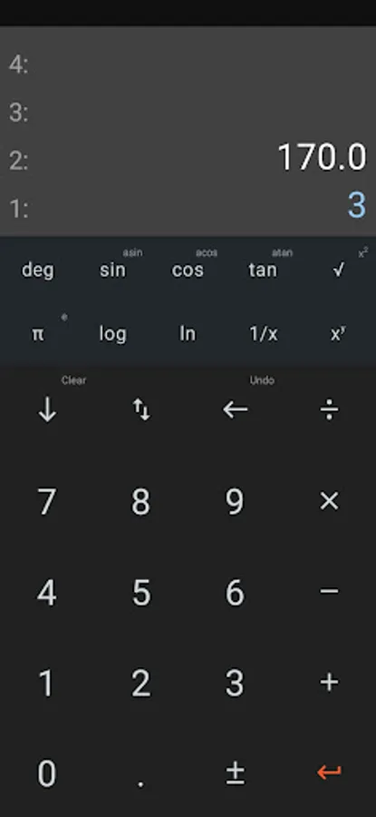 Calculator developed using the RPN format to perform operations.