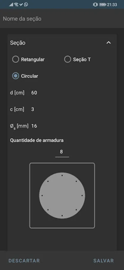 This program obtains the exact solution of the deformed section rupture configuration and, consequently, the resistant efforts of the section in the ultimate limit state. In possession of this information, the calculator has enough information to guarantee ductile rupture, bringing significant gains in safety and accuracy.