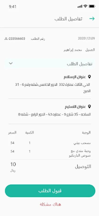 Receive customer requests and inquire about the location of receiving and delivering the order