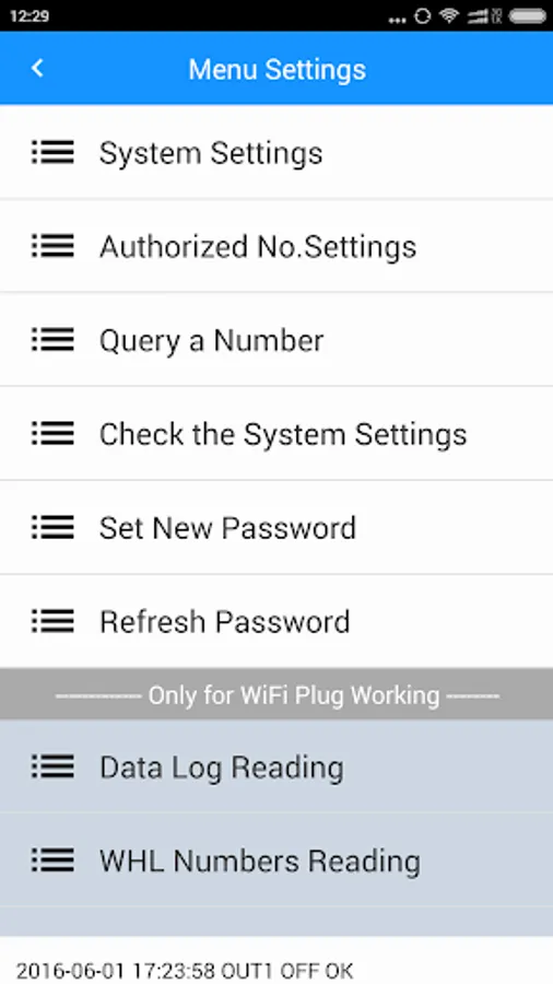 You can use the app to read the data log file and the WHL numbers phone book at the close range with wifi wireless module.