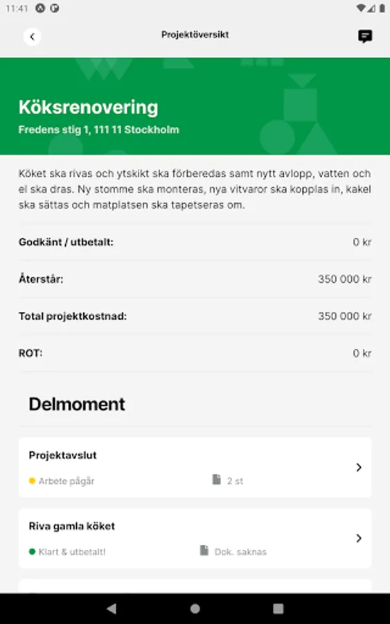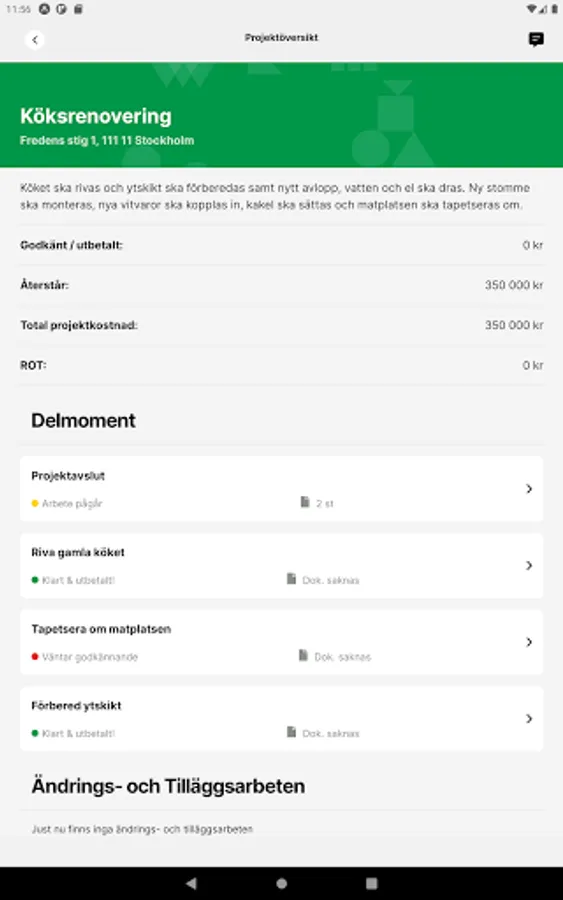 In the app you can see all ongoing projects, with documentation and other information that is updated continuously and in real time.