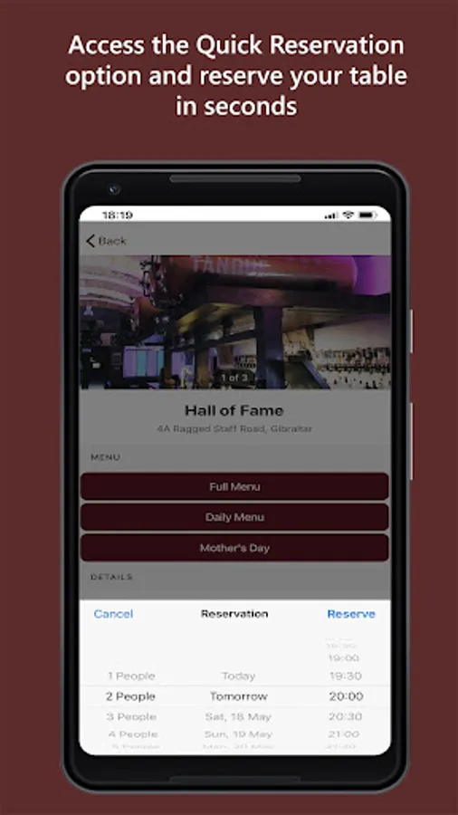 Reserve is Gibraltar’s leading online table reservation service. Established in 2018, iReserve is proud to continue to lead the industry in allowing customers to reserve tables online in a fast and efficient process. Given iReserve’s close connection with Gibraltar’s leading restauranteurs and tourism operators, we are certain that your customer experience with us with be invaluable. Reserve your lunch, dinner or special occasion and you will not be disappointed! No more phone calls, no more hassle… Download our free app to benefit from the following services: