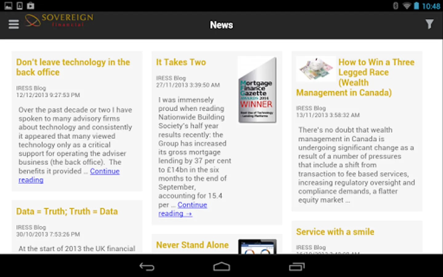 Clients of Sovereign Financial Group can now access their portfolio on an Android tablet or phone.