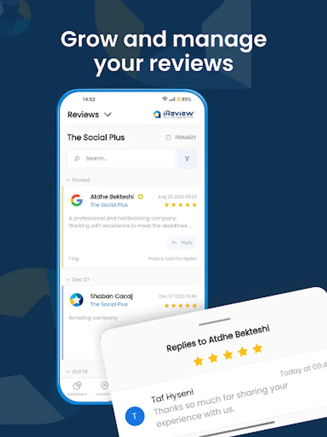 iReview Management Tool helps you generate more reviews, rank higher on search and get more visibility in more places, more often – 90% of online customers look up reviews before making a purchase.