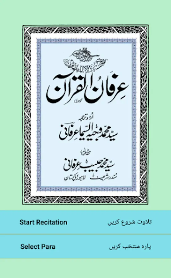 This Holy Quran application namely Irfan ul Quran (by Sundar Sharif) is built in the easiest of manners for the Muslims for their better understanding about the Quran-ul-Qareem. This Holy Quran is in complete Urdu Tarjumma (Translation) so that our Urdu speaking brother and sisters can be aware of the basic meaning of the verses that Allah Almighty has revealed. All the pages are scanned in a perfect so that there is surety of no mistake in any word.