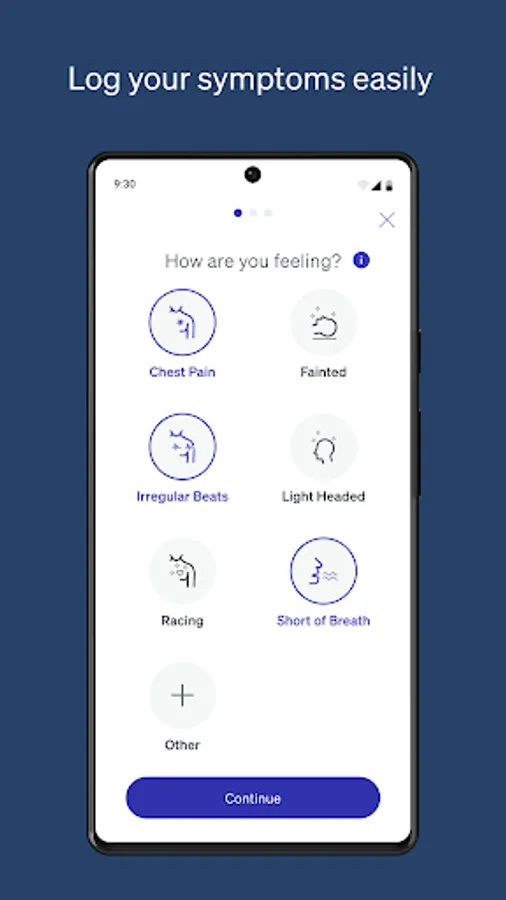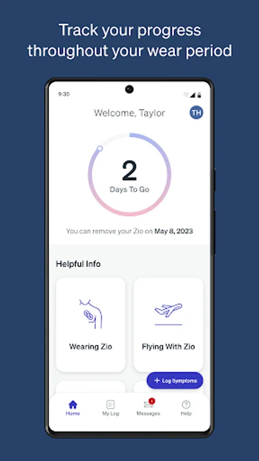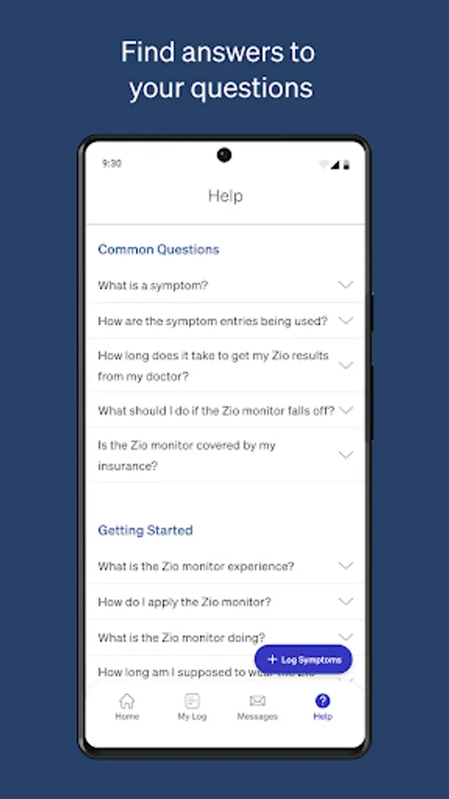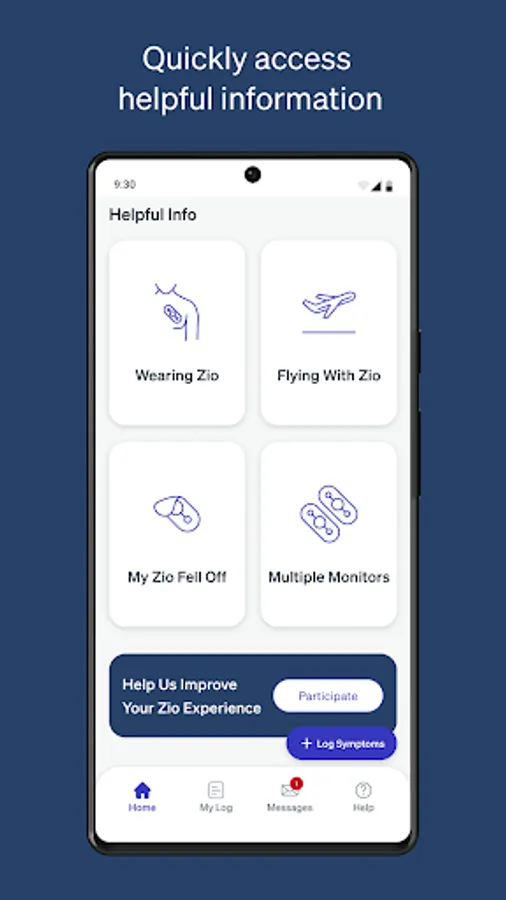 ◦ Seamlessly register your Zio ECG monitor and start logging symptoms.