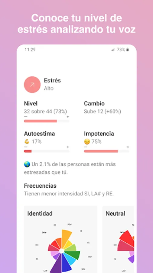 The Iridis stress diary app analyzes your voice in seconds so you know your stress level and creates personalized sound baths for you to relax based on the frequencies that your nervous system lacks.