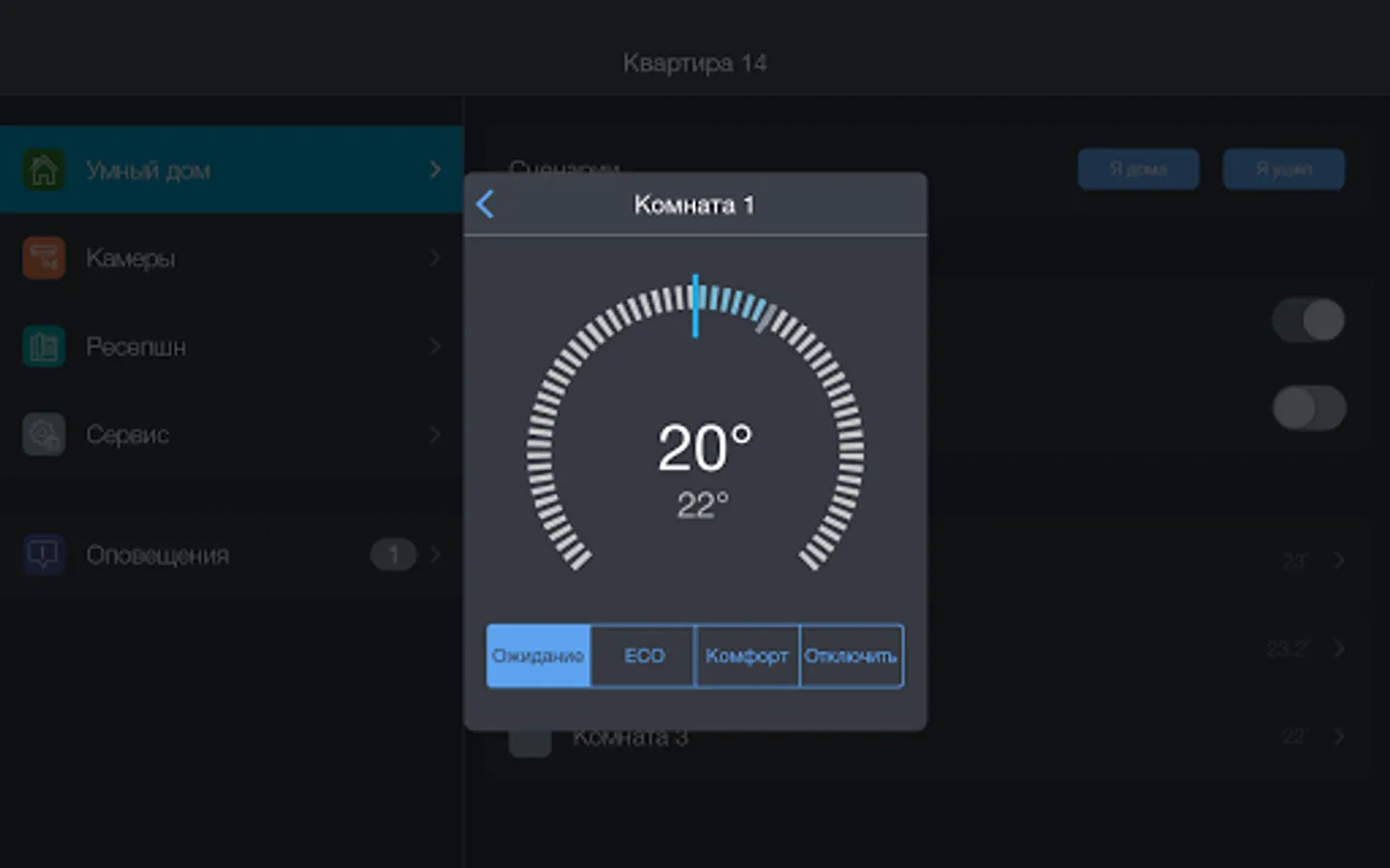 • control of “smart” home systems (if available): light, climate, curtains, AV equipment.