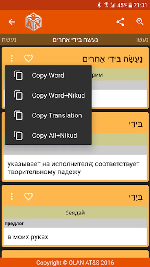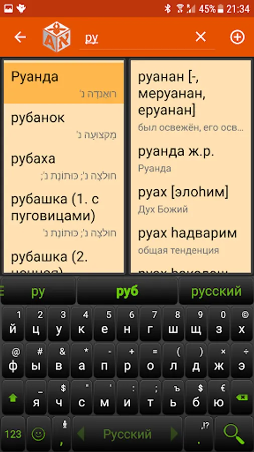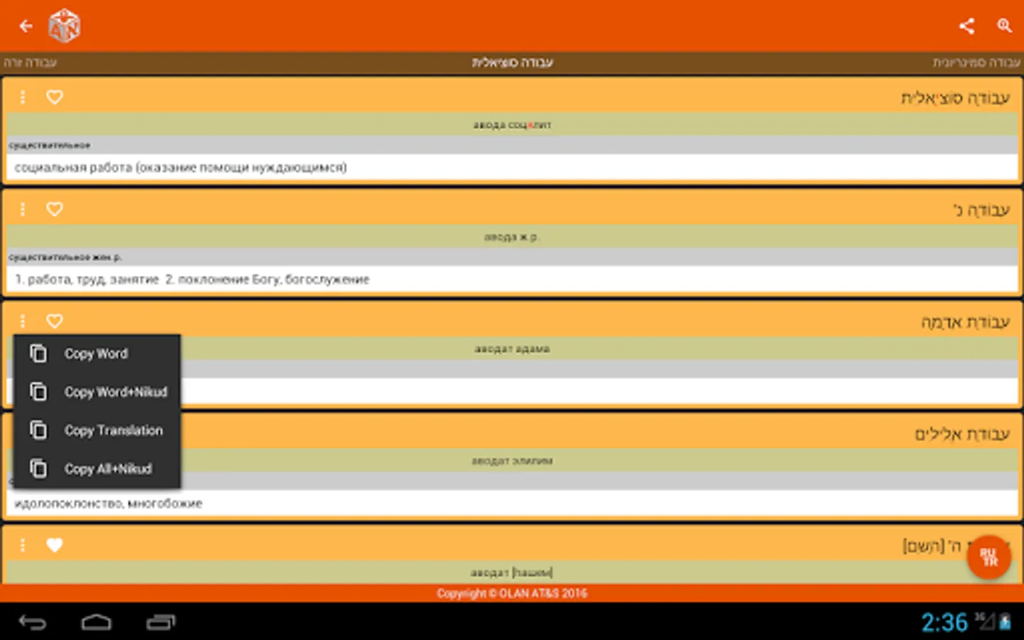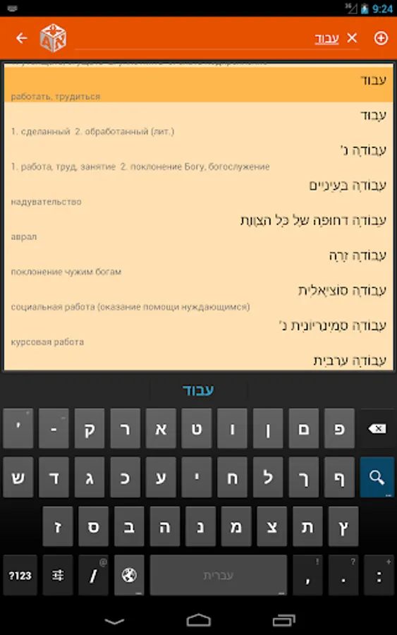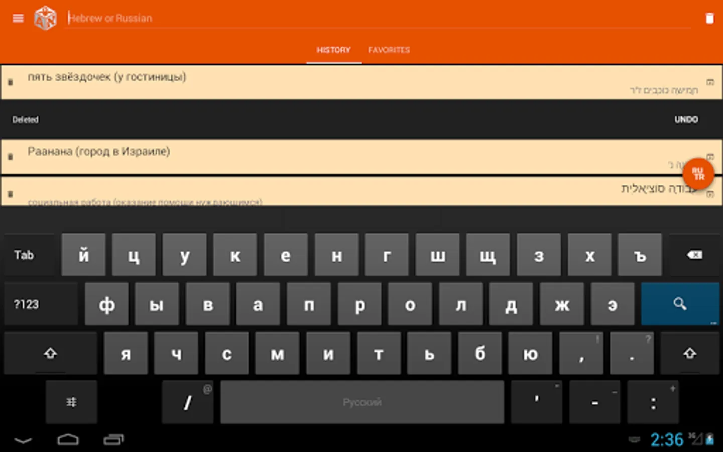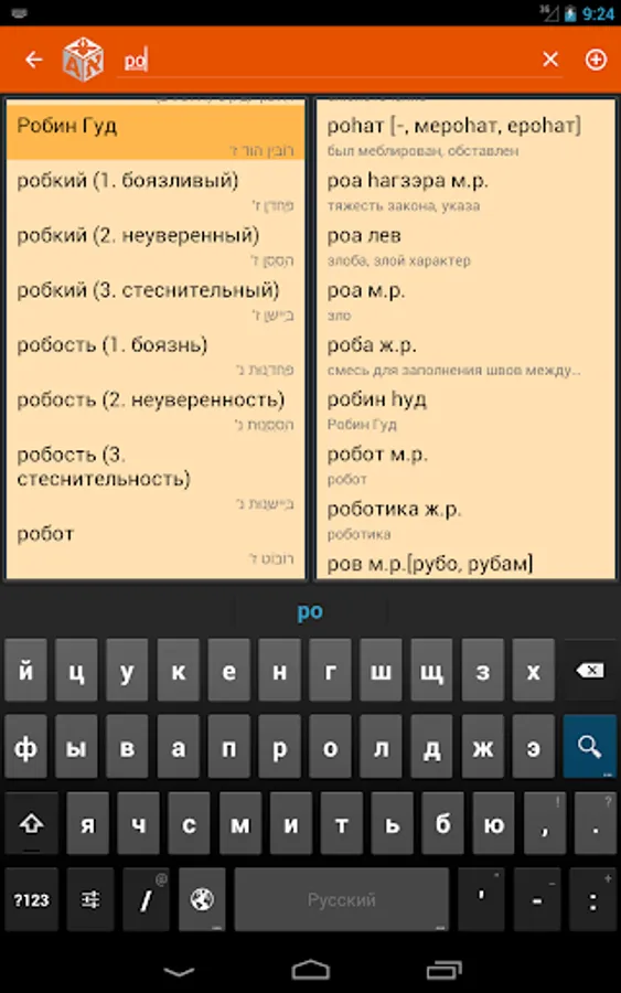 The famous Big Hebrew-Russian and Russian-Hebrew dictionary by Dr. Baruch Podolsky is now available for Android. Providing Hebrew-Russian and Russian-Hebrew translation of over 60,000 words, currently proved to be the most complete, wide-ranging and modern Hebrew dictionary for Russian speakers.