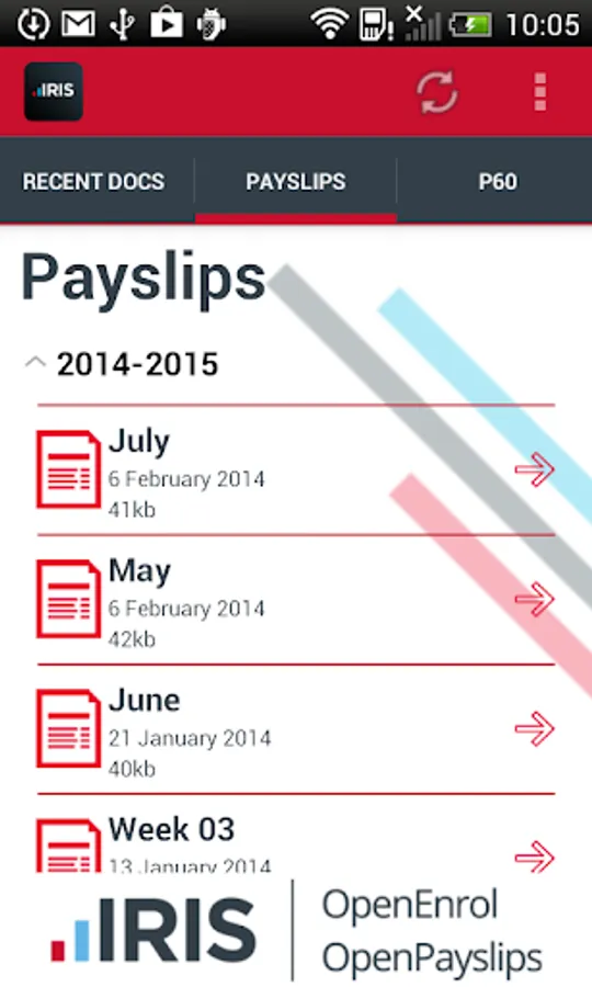 If you haven’t registered, and wish to use this App, then please ask your employer to contact IRIS Software at www.iris.co.uk/payroll and enquire about OpenPayslips.