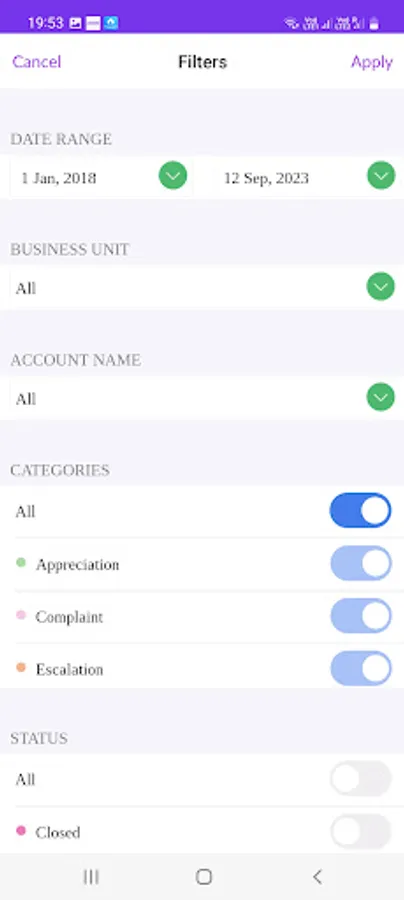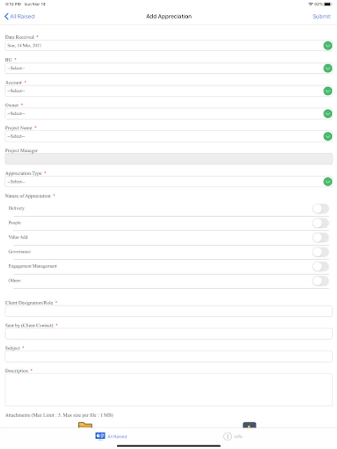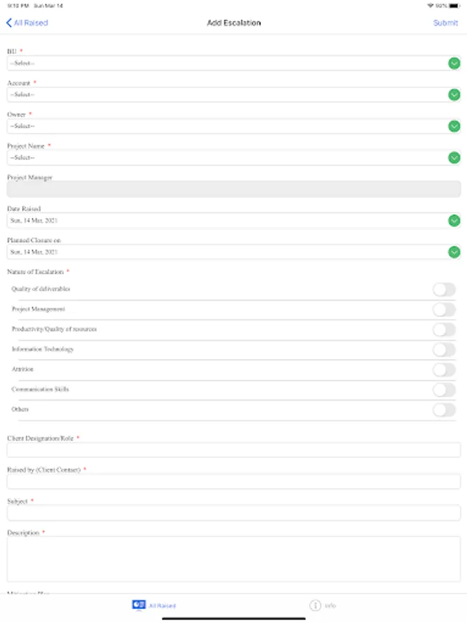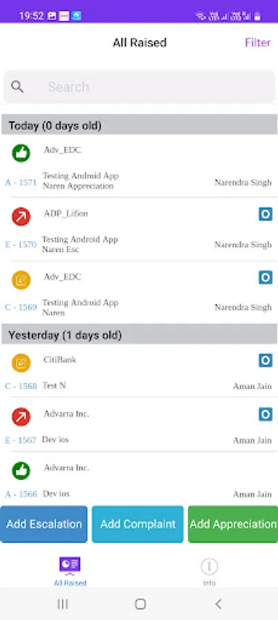 This App is meant for leadership to record escalations, complaints and appreciations received from Customers. The key features are given below: