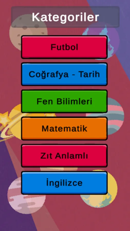 • Futbol, Coğrafya, Tarih, Fen, Matematik, İngilizce ve Film kategorileri altındaki bu kelimeler, senin tahmin etmen için hazırlandı.