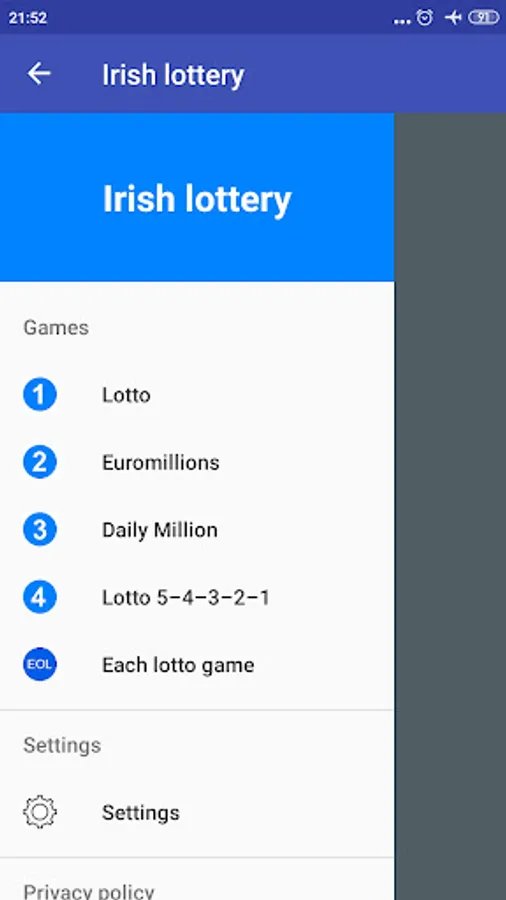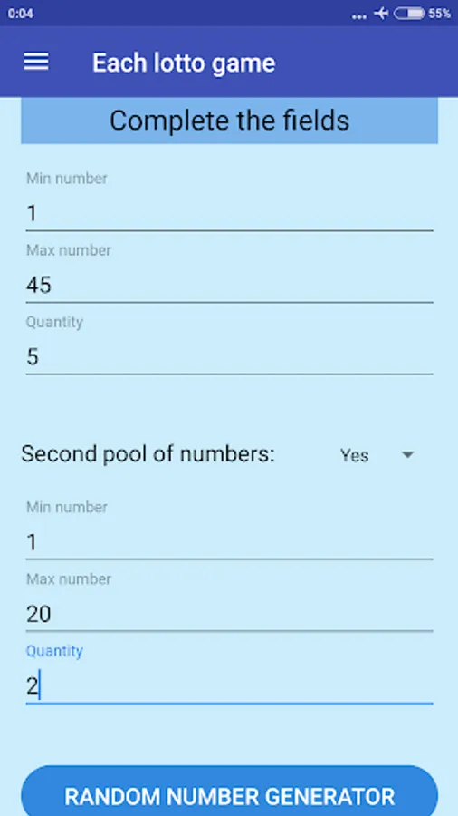 With this free application you can pick random numbers for the games Irish Lotto, Euromillions, Daily million, Lotto 5-4-3-2-1 and each other lotto game.