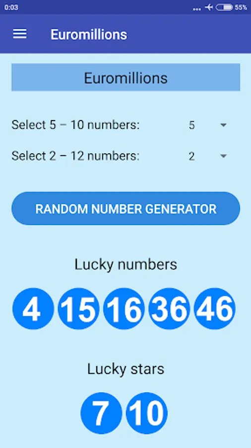 The application is made to help you pick random numbers but does not encourage to play the lottery or any kind of gamble.