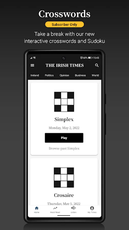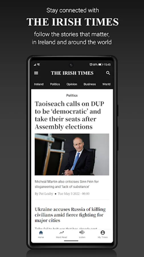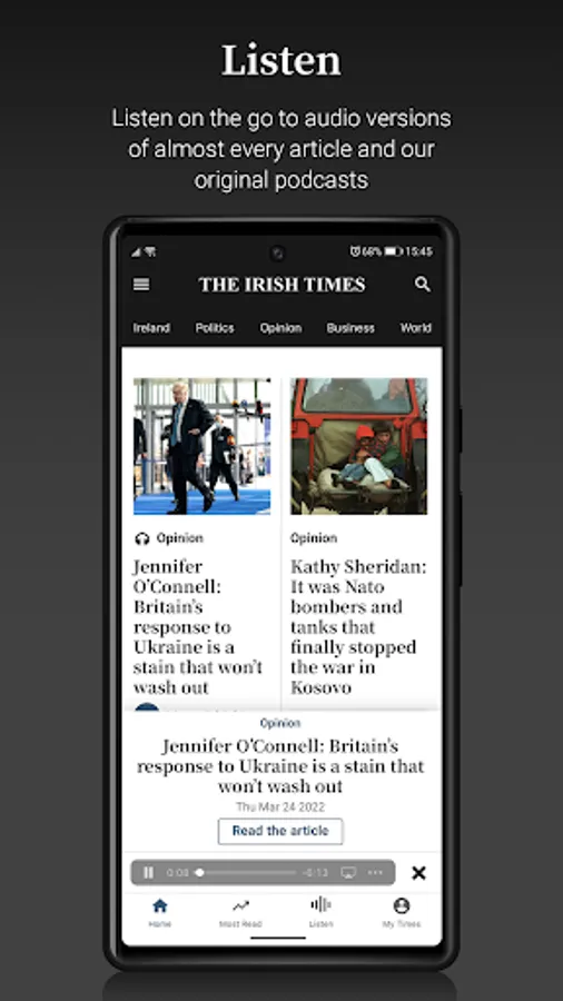 Enjoy Irish Times quality coverage in a range of new sections, including Listen – our specially curated selection of audio versions of the best Irish Times columns and articles.