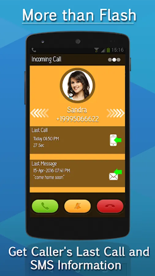 Get flash alerts on every time you get call, SMS and notification. Every time when you get a call or other notification LED light of your camera will start blinking and you will know that you are getting a call or other notification especially when your phone is silent or kept in the dark.