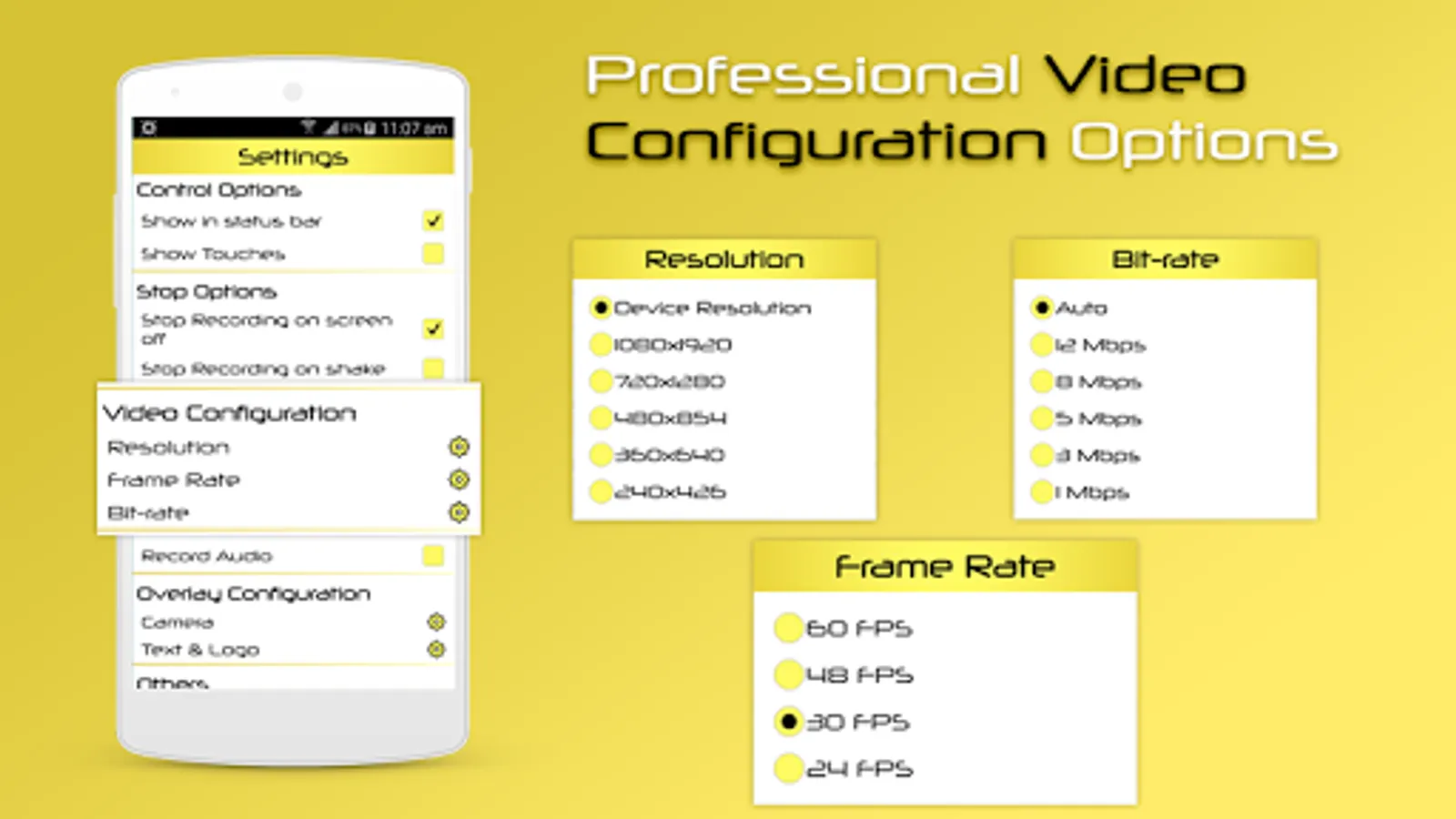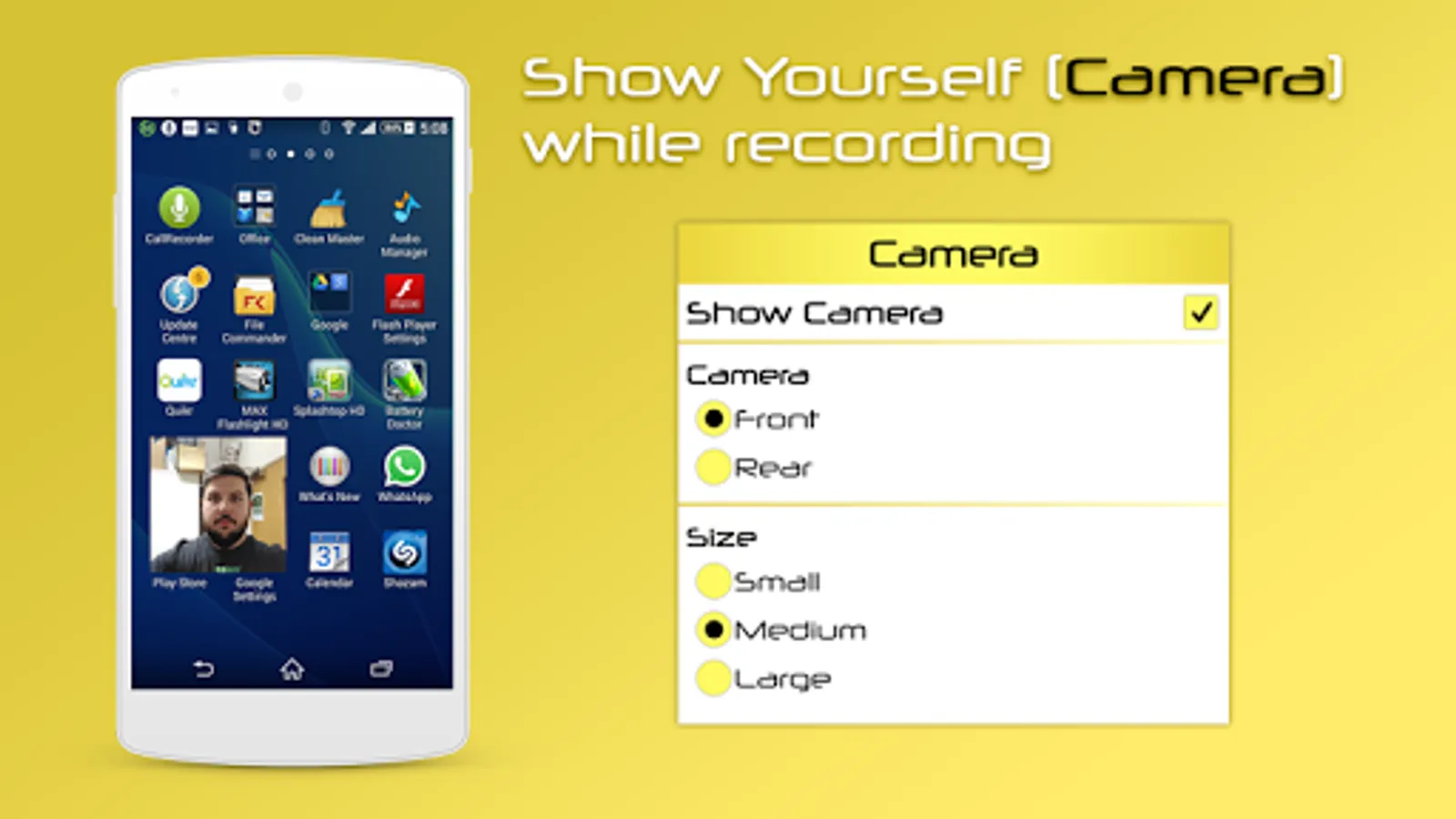 - Personalize screen video by overlaying camera preview, Text and Logo