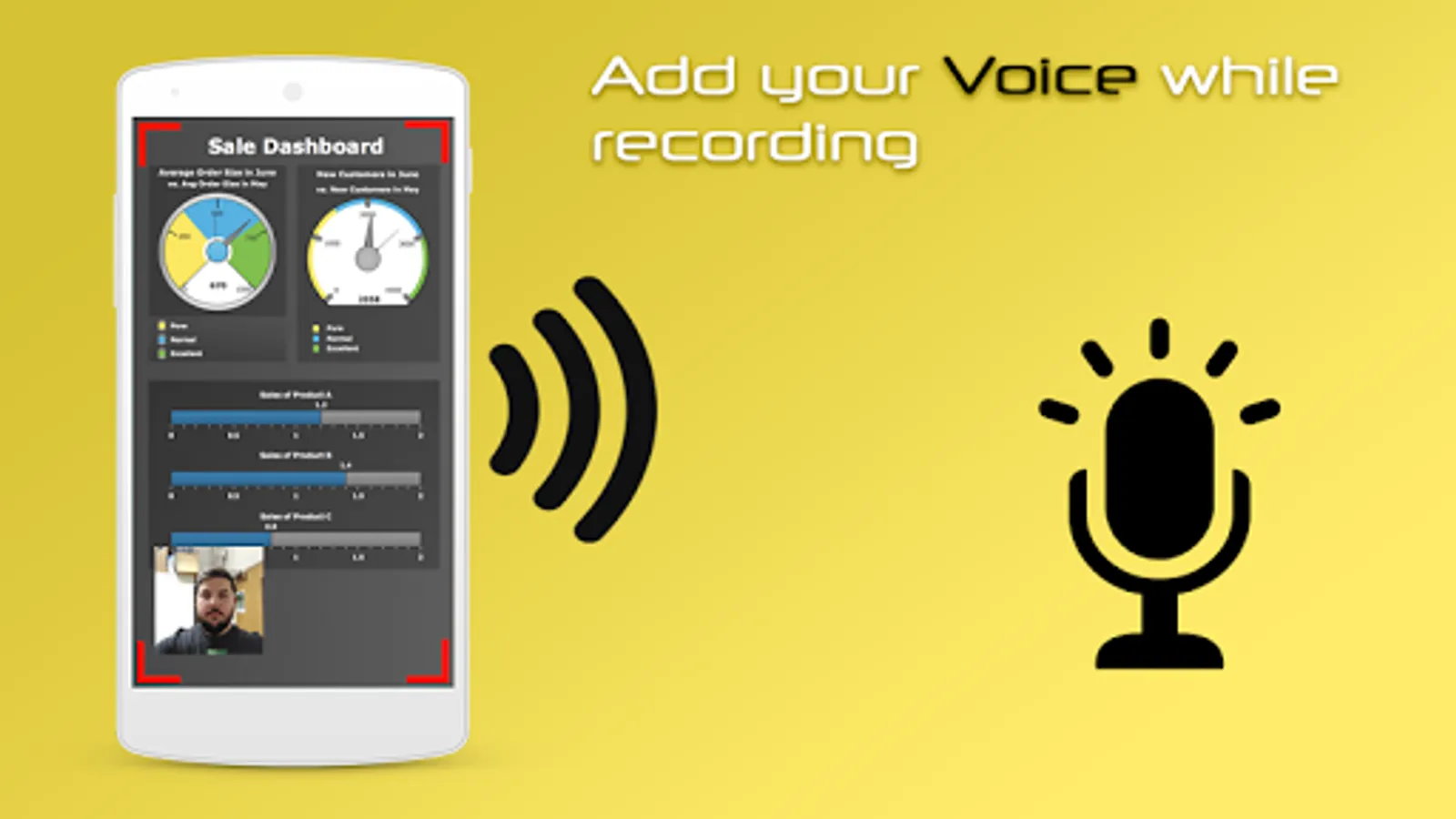 Record your phone screens video with one touch and personalize your video with audio, camera preview, text and logo.