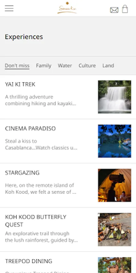 Using our Soneva Kiri app, you can easily view your specially curated itinerary, on-the-go. Find out what's on at our resort and plan your unforgettable stay. Learn more about our one-of-a-kind experiences at the touch of a button, with something for guests of all ages, from underwater adventures or mindful Conscious Experiences to exploring the wonders of Koh Kood. Discover our dining destinations or indulge in a delicious meal in your private villa – view our menus, place your order and communicate any specific details to our Culinary Team. Browse holistic therapies, massages and spa rituals on your own device. If you need any further information, simply click on ‘Get in Touch’ and send us a message – our relevant team will get back to you promptly. Enjoy your stay at Soneva Kiri.