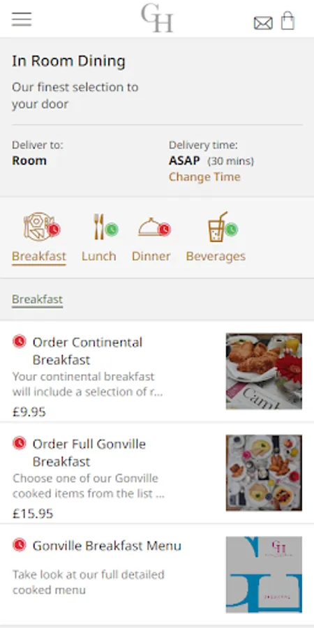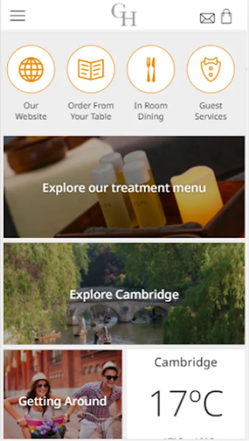 Experience Gonville on the go by downloading your personal concierge app which allows you to make ant service request or room service orders wherever, whenever. View and order your next delicious meal when you are out and about looking at the local sites, we will have it ready for specific time - whatever suits you!