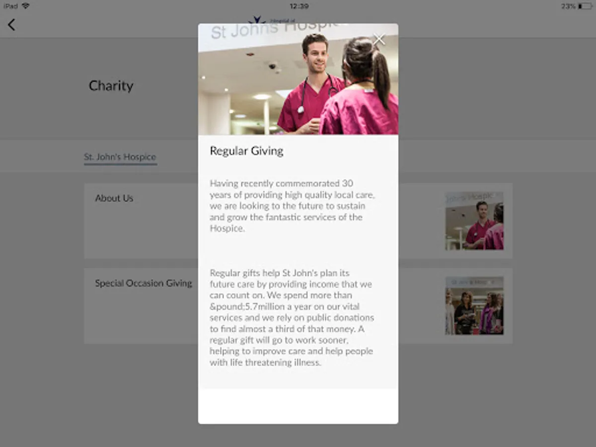 Although we provide acute private healthcare services, our charitable status is based on the fact that we utilise surplus funds to run St John’s Hospice, located within the grounds of the Hospital. This inpatient, day care and community facility provides care, without charge, to people living within our wide catchment area.